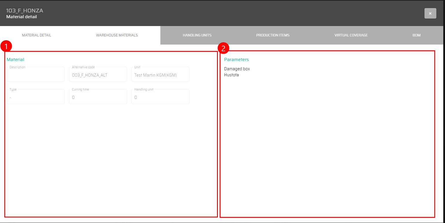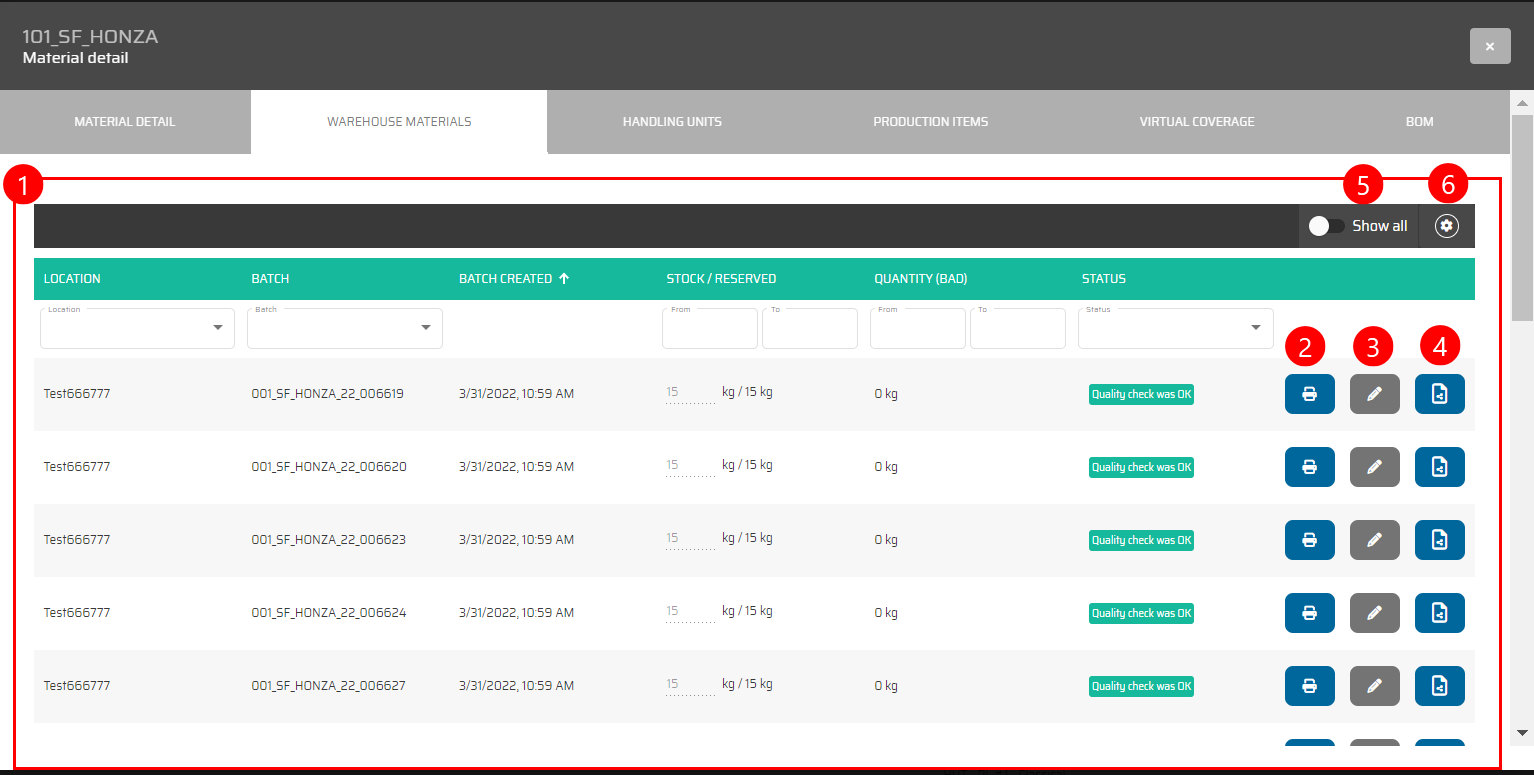 This section provides material-oriented information, mirroring the content available in the 'Warehouse Locations' tab.