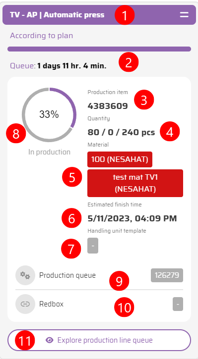 Information about the production queue