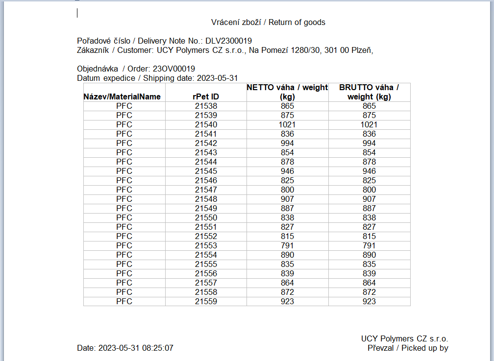The Document for printing: