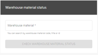The Warehouse Material Status widget is a search-type widget where the user can enter a material number to find all warehouse materials with that number. This widget allows you to efficiently search for and view the status of specific items in the warehouse.
