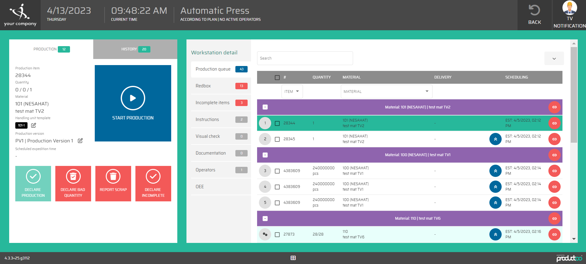 Obrazovka Shopfloor View je navržena tak, aby poskytovala výrobním operátorům informace o výrobním procesu v reálném čase a umožňovala jim sledovat a řídit výrobu přímo u výrobní linky. Na obrazovce se zobrazují všechny potřebné informace, které operátor potřebuje k řízení výrobního procesu, včetně aktuální výrobní položky, další výrobní fronty a konkrétních výrobních pokynů pro každou zakázku.
