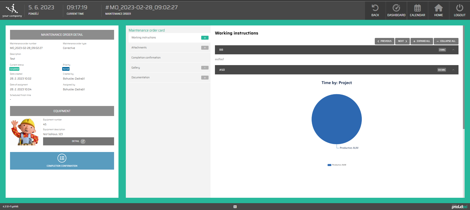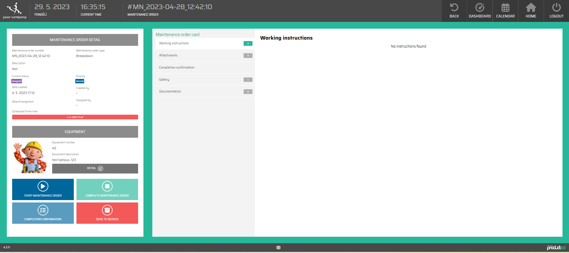 To show detail about specific maintenance order displayed in the calendar/table, we press the one to open the detail information.