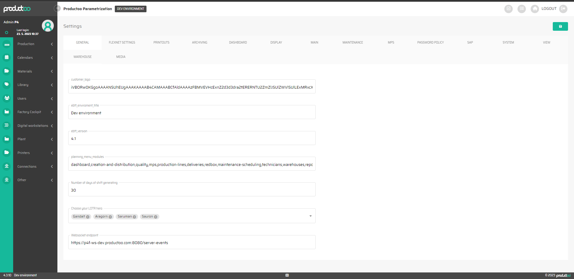 Sekce Settings (Nastavení) se nachází v levé části obrazovky v části Others (Ostatní). Po stisknutí této záložky se zobrazí obrazovka se 16 kartami. V nich můžeme nastavit, jak bude aplikace pracovat.
