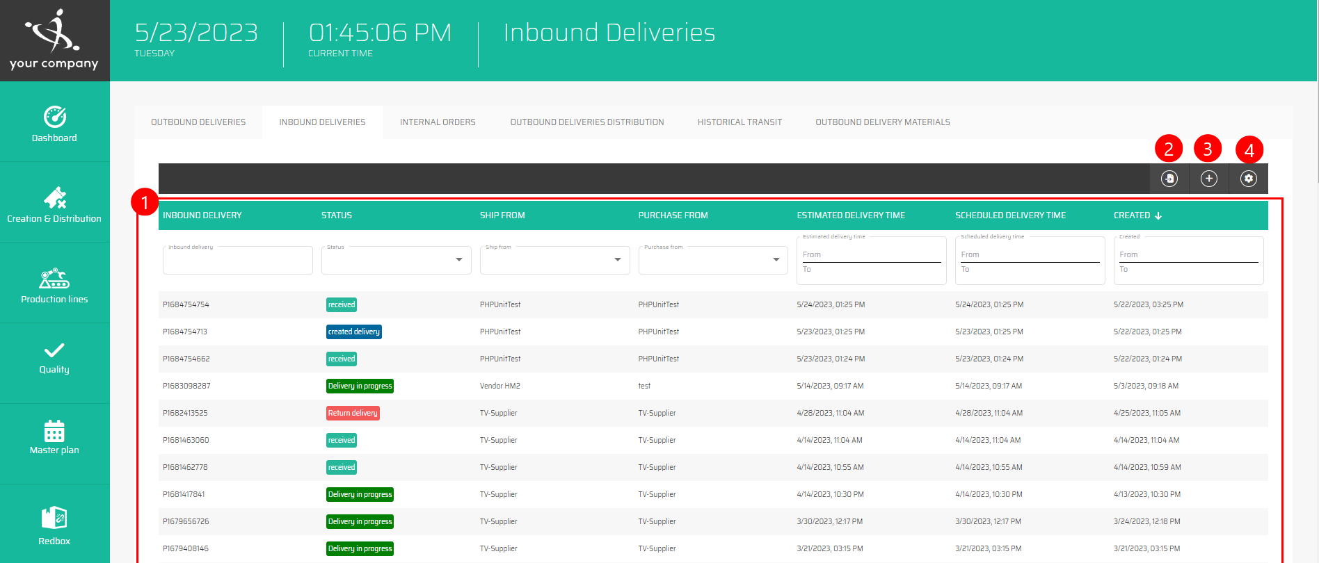 List of all inbound deliveries