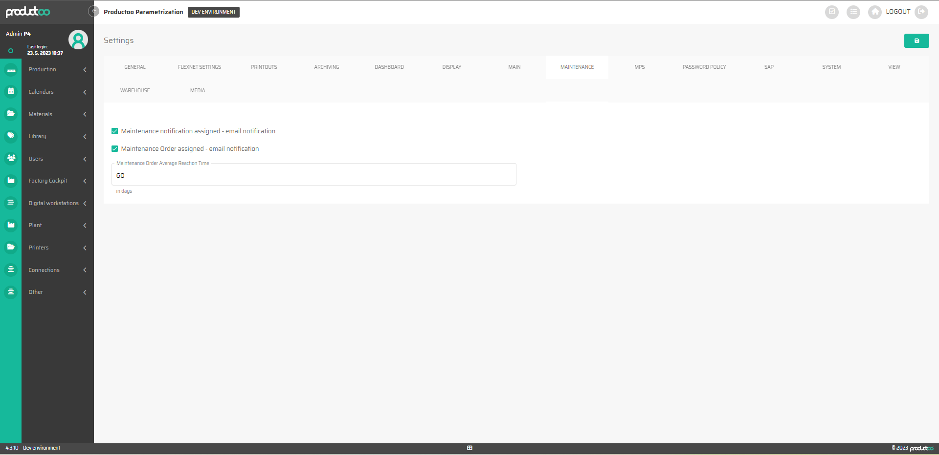 Maintenance Order assigned - email notification | Checkbox | Zapnuto/vypnuto |