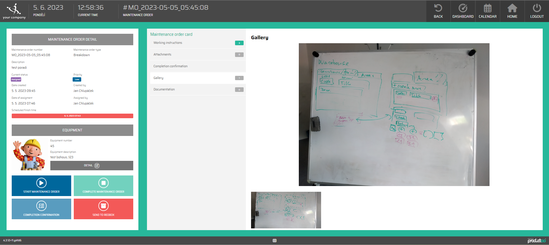 In this section, detail information about the specific maintenance order can be seen. This part of the module can be accessed from several points. From the main screen, we can access the specific order which is listed on the left side of the screen.