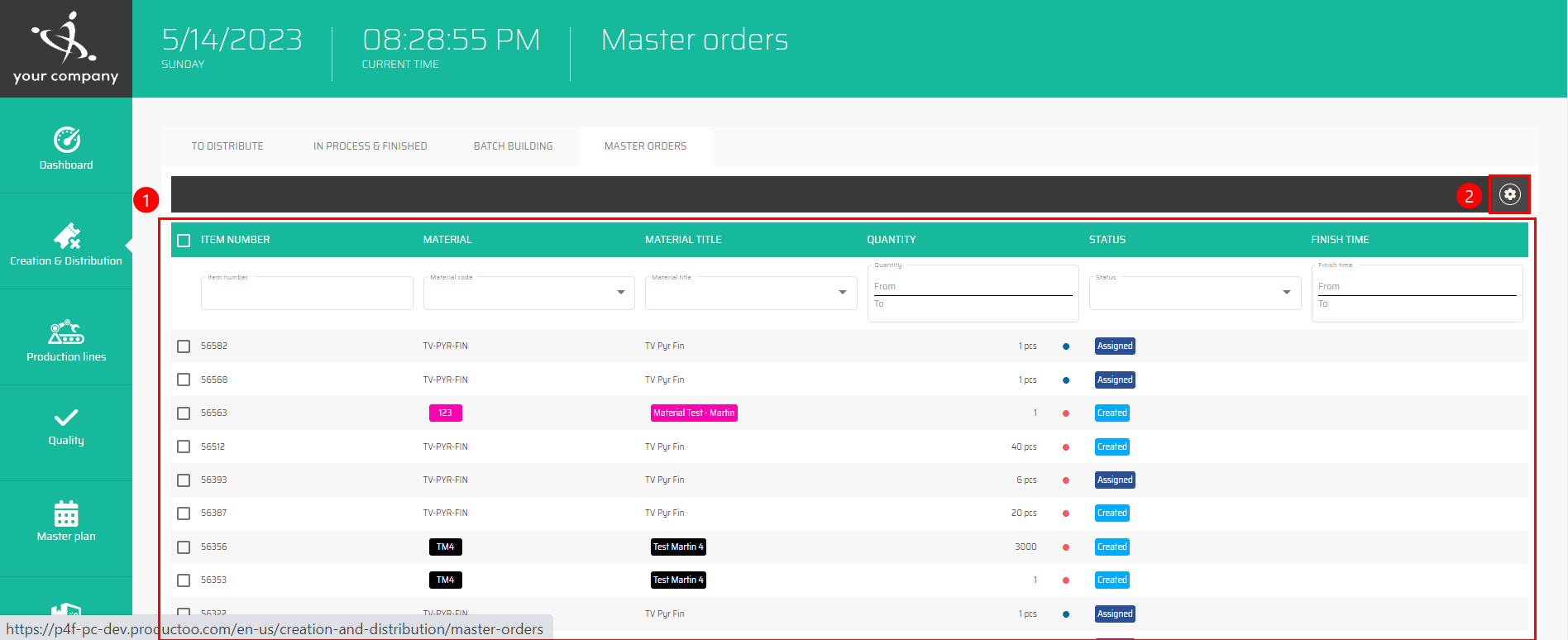The list of all Master orders can be filtered and sorted by all shown columns, which means by: