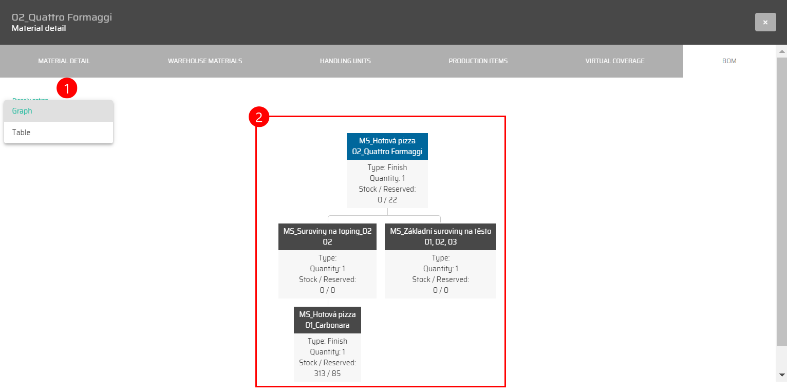 This section provides material-oriented information, mirroring the content available in the 'Warehouse Locations' tab.