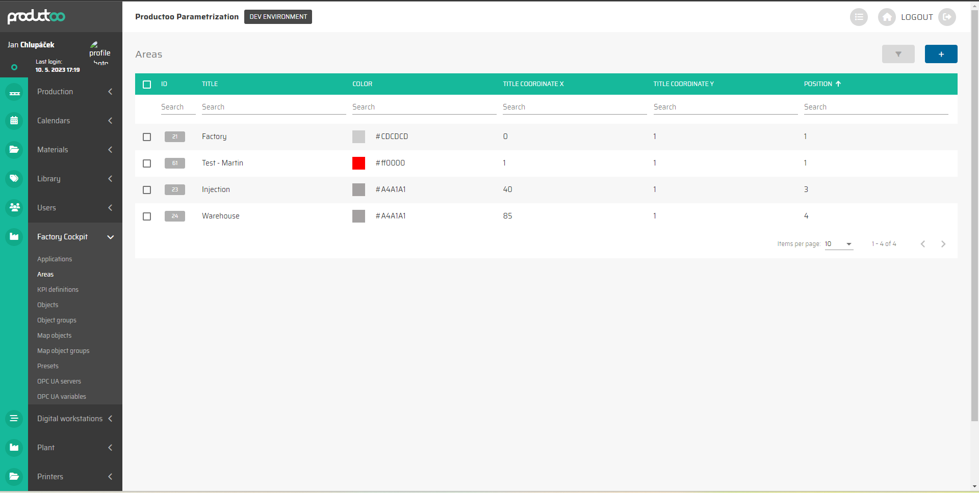 Tato karta zobrazuje všechny Oblasti vytvořené v aplikaci P4 a umožňuje vytvářet, upravovat nebo mazat Oblasti. Seznam Oblastí lze filtrovat podle všech zobrazených sloupců, tedy podle: