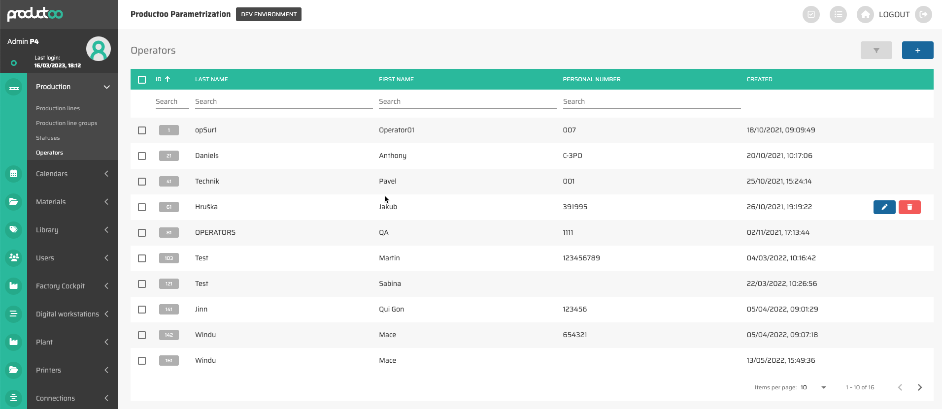Upozorňujeme, že operátoři jsou jednoduché objekty namísto uživatelů. Není možné povolit přístup operátorů do jiné obrazovky než Shopfloor View. Pokud je potřeba přistupovat kamkoli jinam, musíme místo operátora vytvořit uživatele.