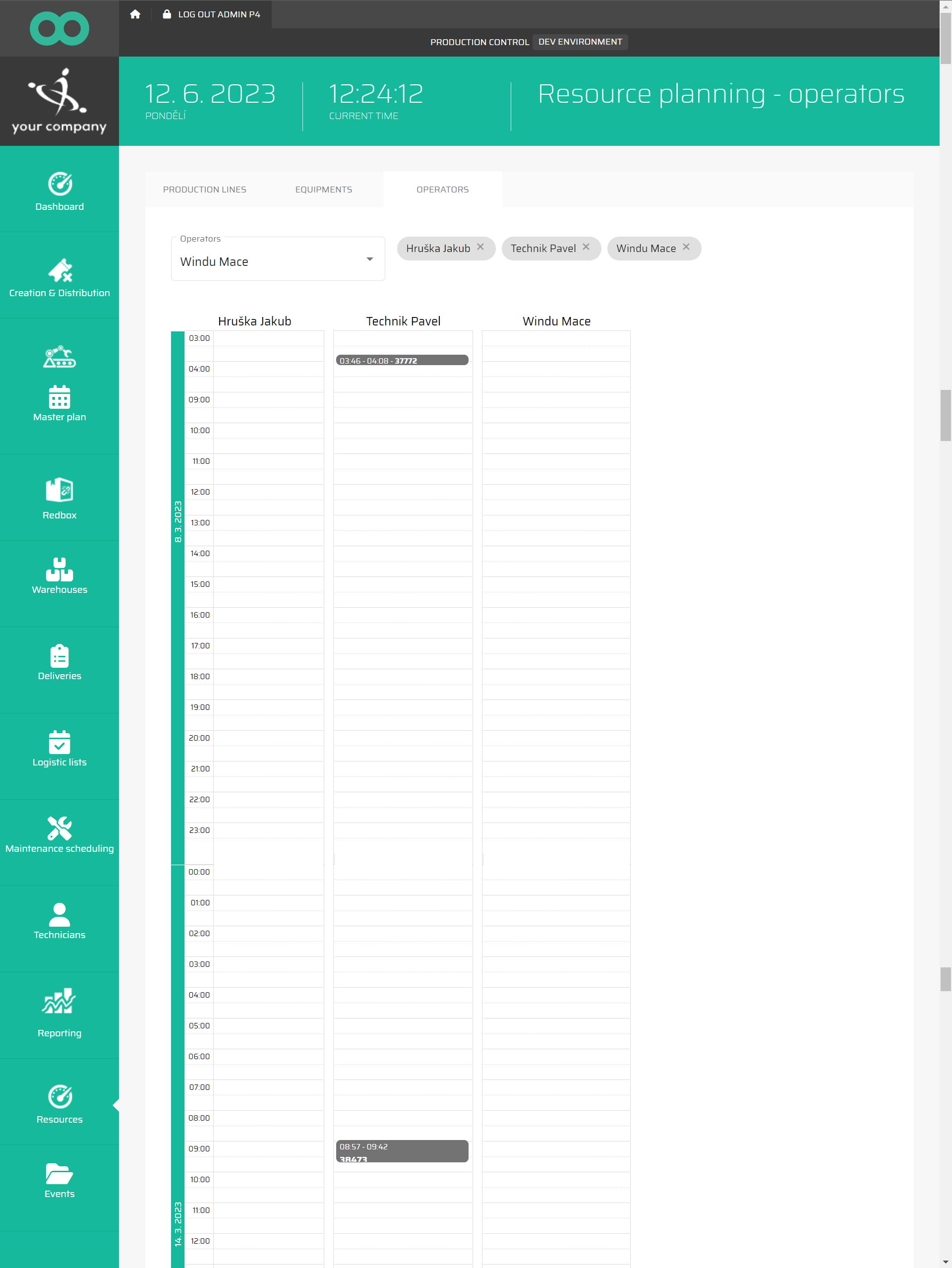 In the tab operators of the section resources, by selecting multiple operators we can see their schedule and plan shifts more efficiently.