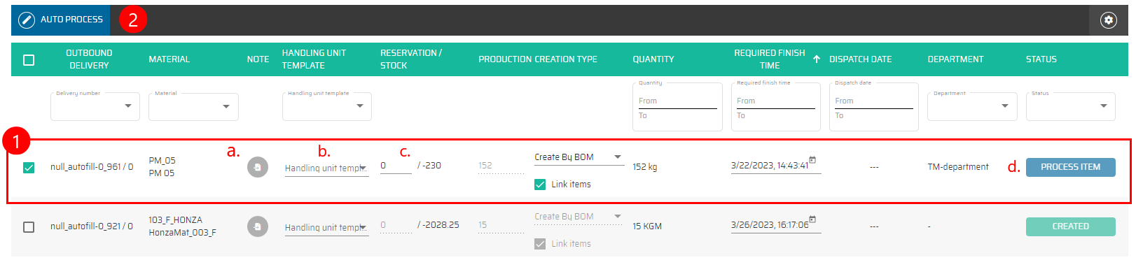 - Process itemAfter clicking on the item, we will be presented with an option to :AutoProcess: