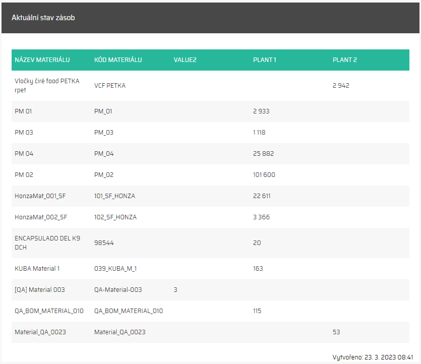 Aktuální stav zásob