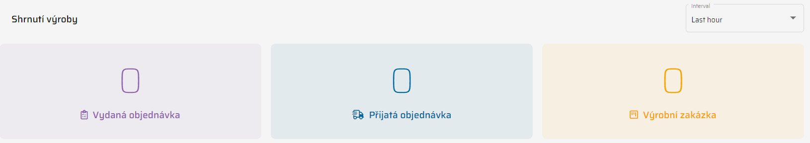 Výchozí část, která se zobrazuje po přístupu k modulu řízení výroby, je Přehled.