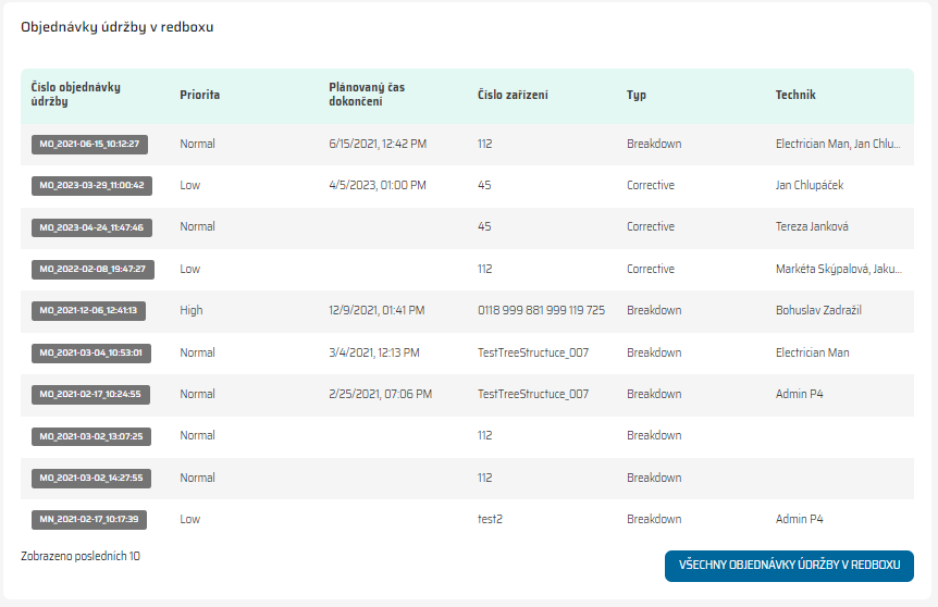 Plánování údržby: Na základě těchto údajů můžete plánovat budoucí údržbové aktivity pro konkrétní equipment, aby se zajistila jeho spolehlivost a bezproblémový provoz.