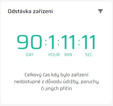 Widget "Odstávka zařízení" poskytuje klíčovou informaci o tom, kolik času bylo investováno do údržby daného equipmentu během určitého období. To může být užitečné pro: