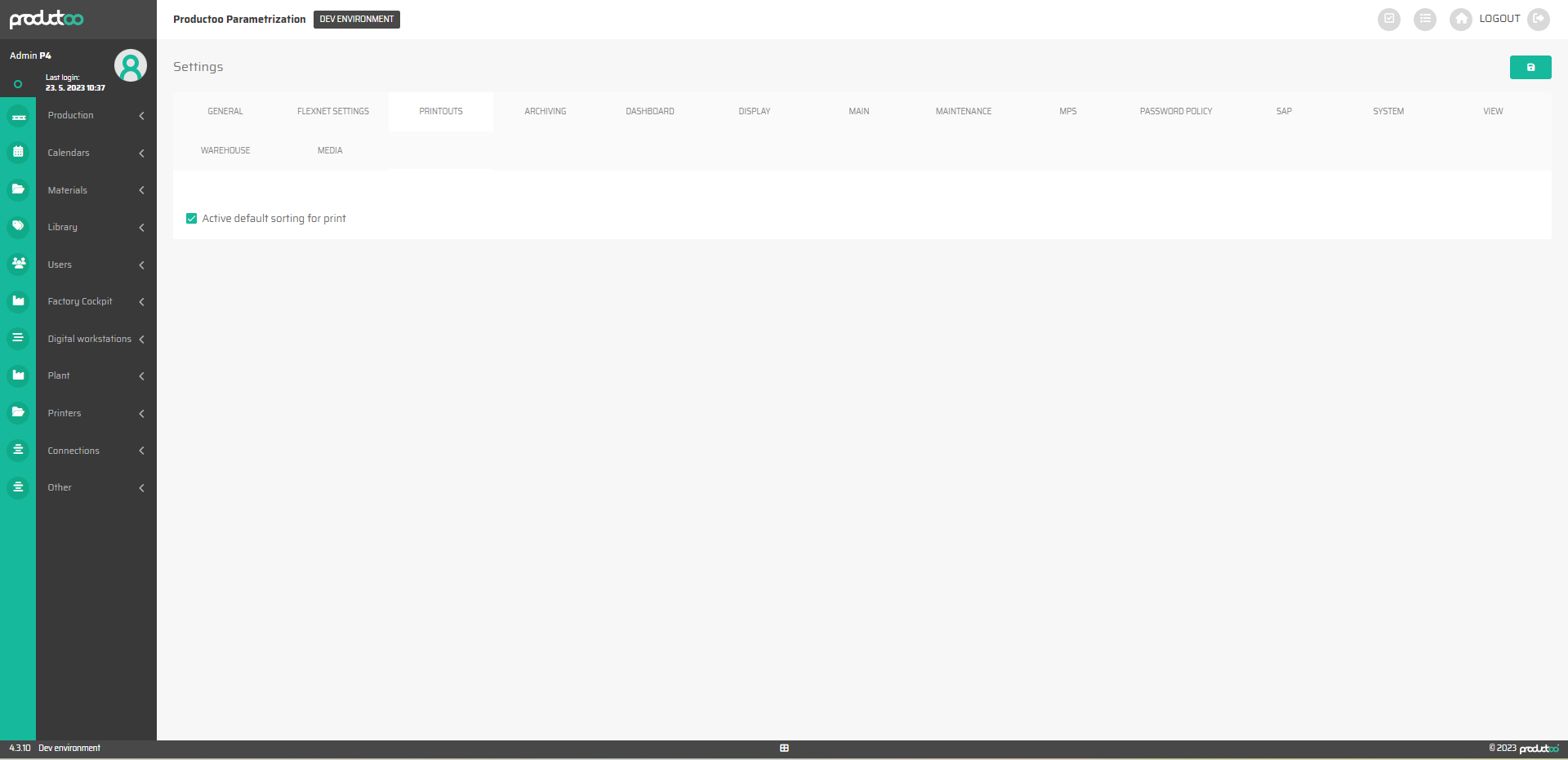 Active default sorting for print | Checkbox | Zapnuto/vypnuto |