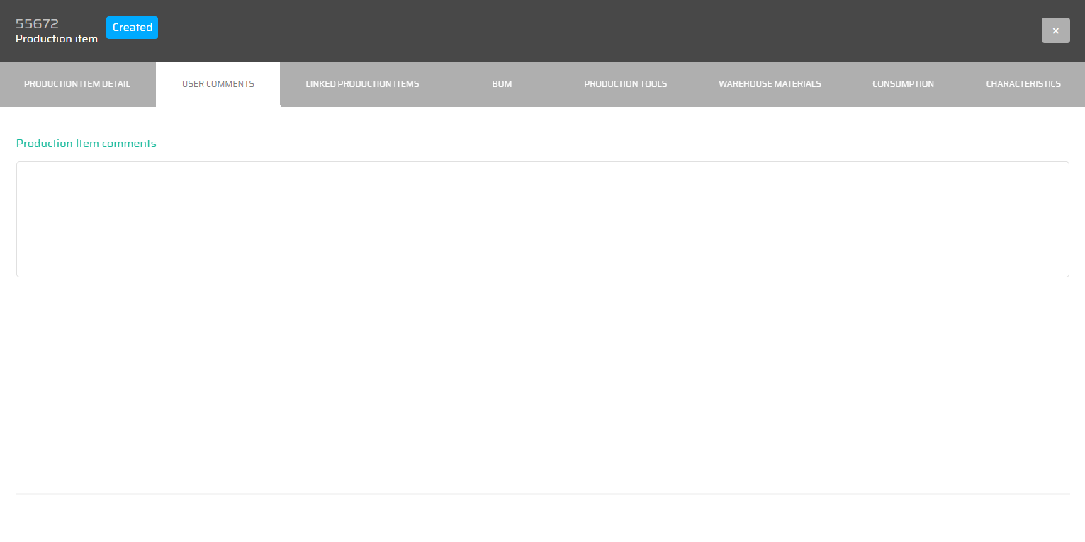 Provides a way for authorized users to add notes or feedback related to a specific production item. These comments can include information such as quality control results, production issues, or suggestions for improvement.