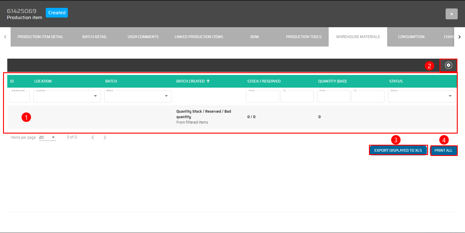 Tlačitkem :BatchEye: budeme přesměrováni do konkrétní výrobní dávky.