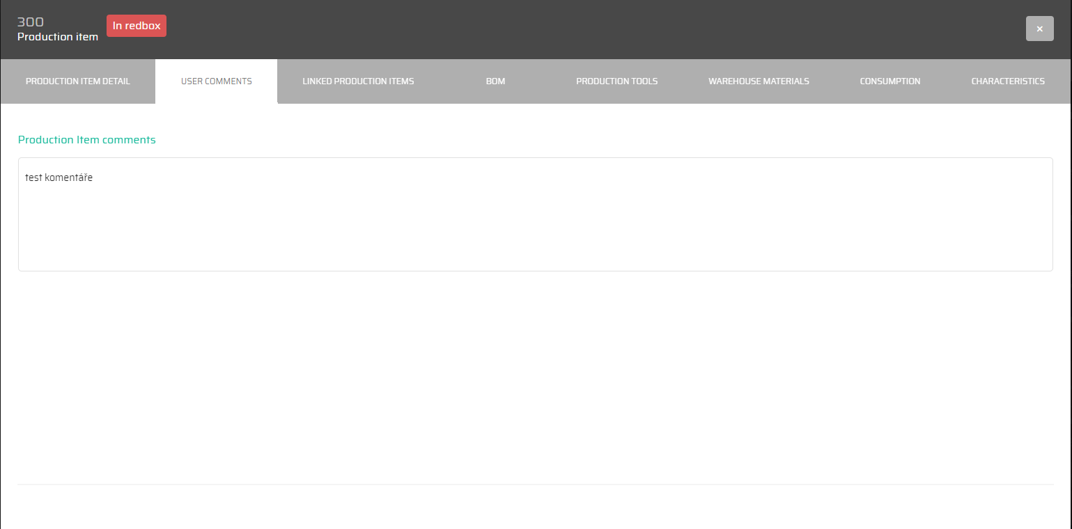 Poskytuje způsob, jak umožnit oprávněným uživatelům přidávat poznámky nebo zpětnou vazbu související s konkrétní výrobní položkou. Tyto komentáře mohou zahrnovat informace jako výsledky kontroly kvality, výrobní problémy nebo návrhy na zlepšení.