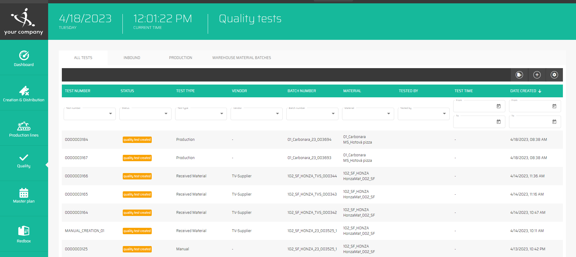 This page presents a summary of all quality tests that were generated within the application.