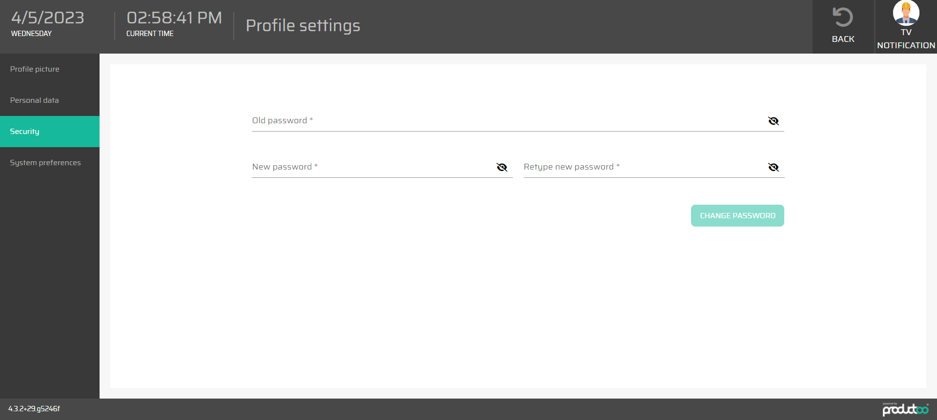 On the Security tab is possible to change user password.