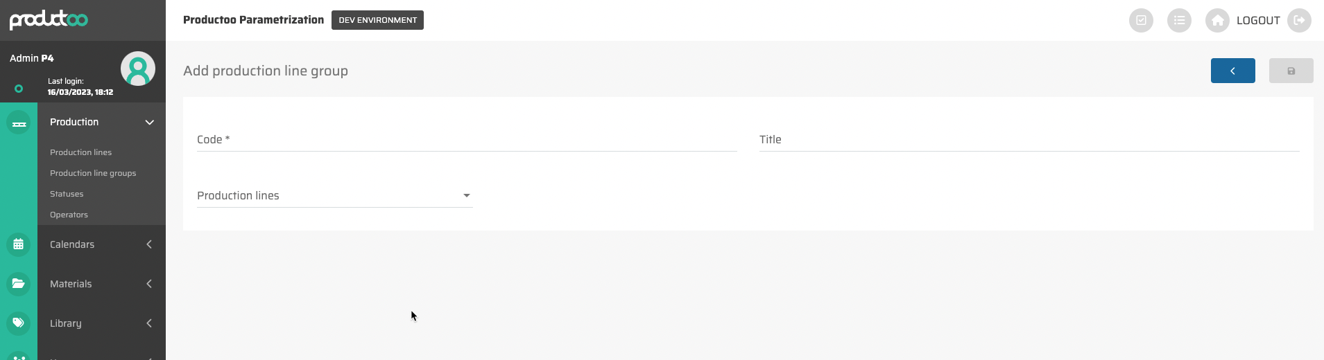 Na obrazovce detailu skupiny výrobních linek můžeme upravovat již vytvořenou skupinu výrobních linek nebo vyplnit všechny údaje potřebné k vytvoření nové.