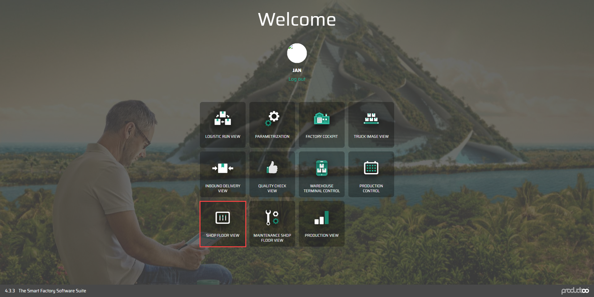 Zobrazení Shopfloor View je přístupné přes úvodní stránku kliknutím na tlačítko Shopfloor View: