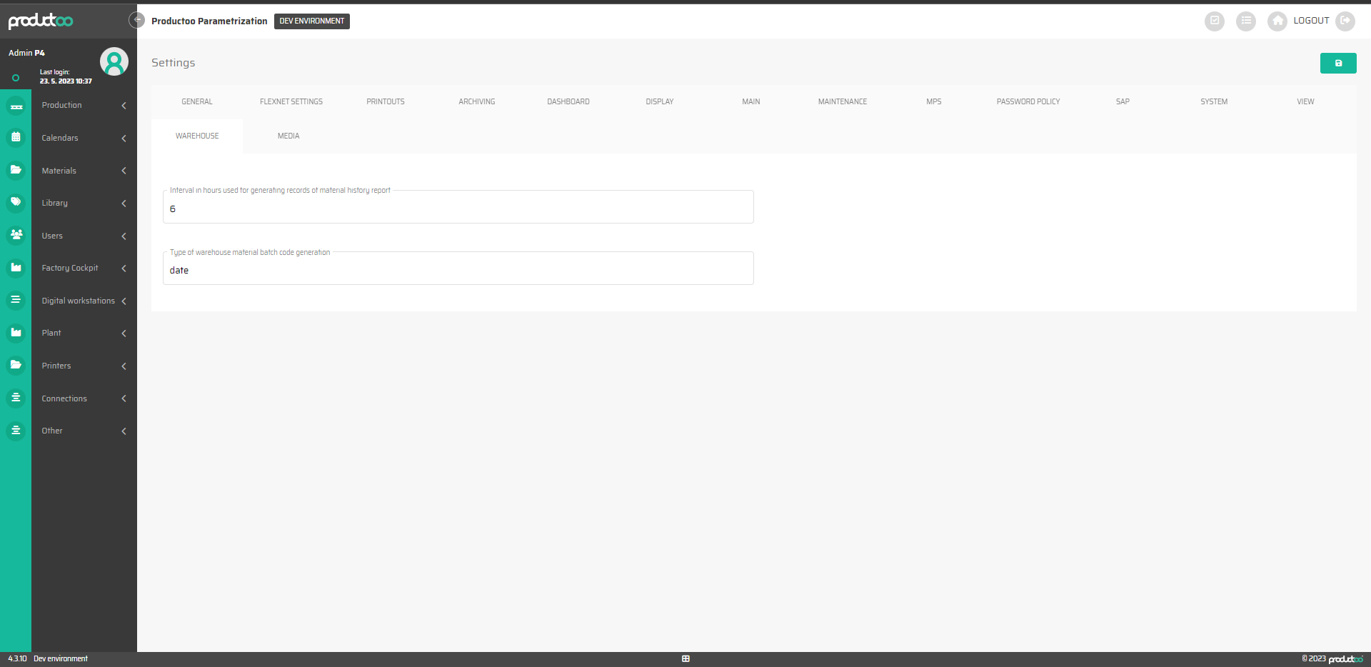 Type of warehouse material batch code generation | Chars | Volný text |