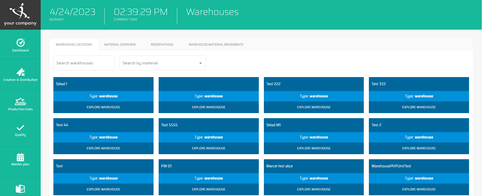 The setting for the warehouses can be edited in the parameterization in the section Plant, Warehouses.