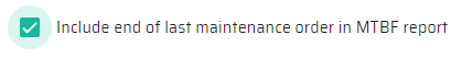 If the parameter in Parametrization - Settings - Maintenance: Include end of last Maintenance Order in MTBF report is active, Time Between Failure is also calculated for the last finished MO and the current time.