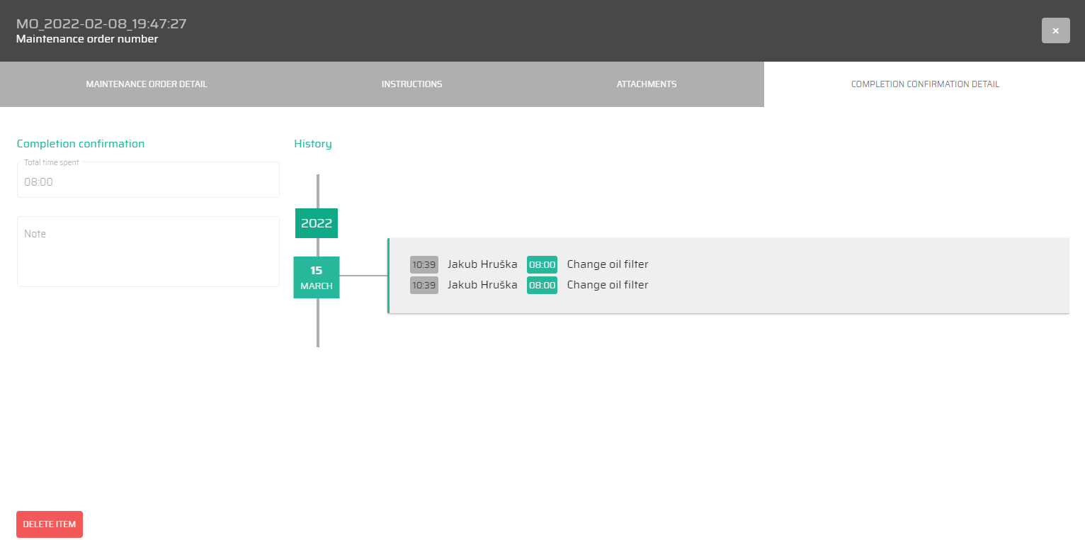 With the button :DeleteItem: we can delete the whole maintennance order.