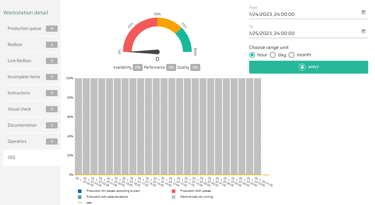 | The unit we choose will influence the graph of OEE and will display the efficiency per chosen unit. |