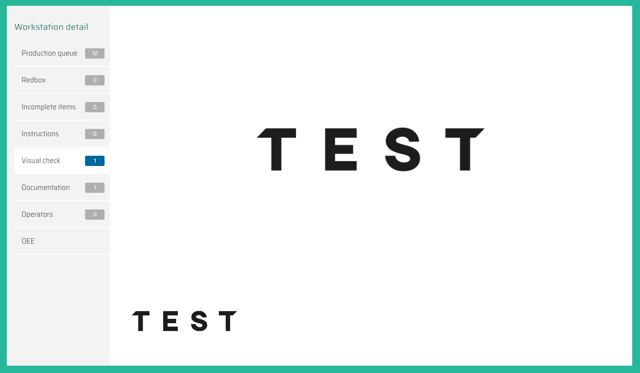 The Visual Check tab in the workstation detail contains media files for visual inspection. For example, photographs of partial stages of production or the final product can be uploaded here.