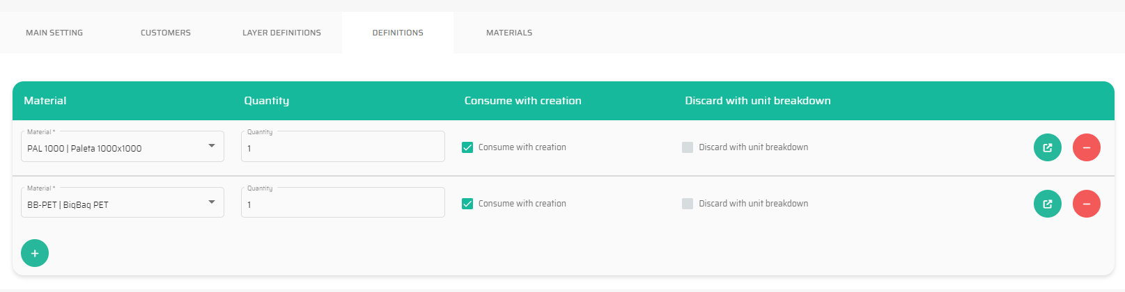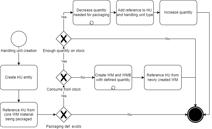 Each packaging has a definition of how many it is needed (Quantity) to create the handling unit and whether the packaging is taken from stock or is created automatically (Consume with creation). This usually differentiates a process of receiving (creating new stock) vs. production (consuming stock).