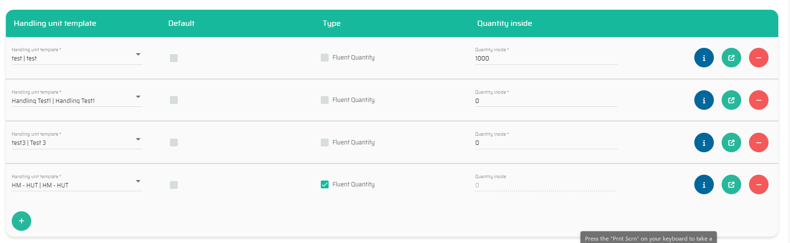 Each material can have either a defined quantity inside or a fluent quantity. Fluent quantity means we define the amount of material packaged inside during the receiving process or in production by partial declaration. When we have a defined quantity inside, the same applies only with the addition of splitting the quantity to as many handling units as is needed by the definition.