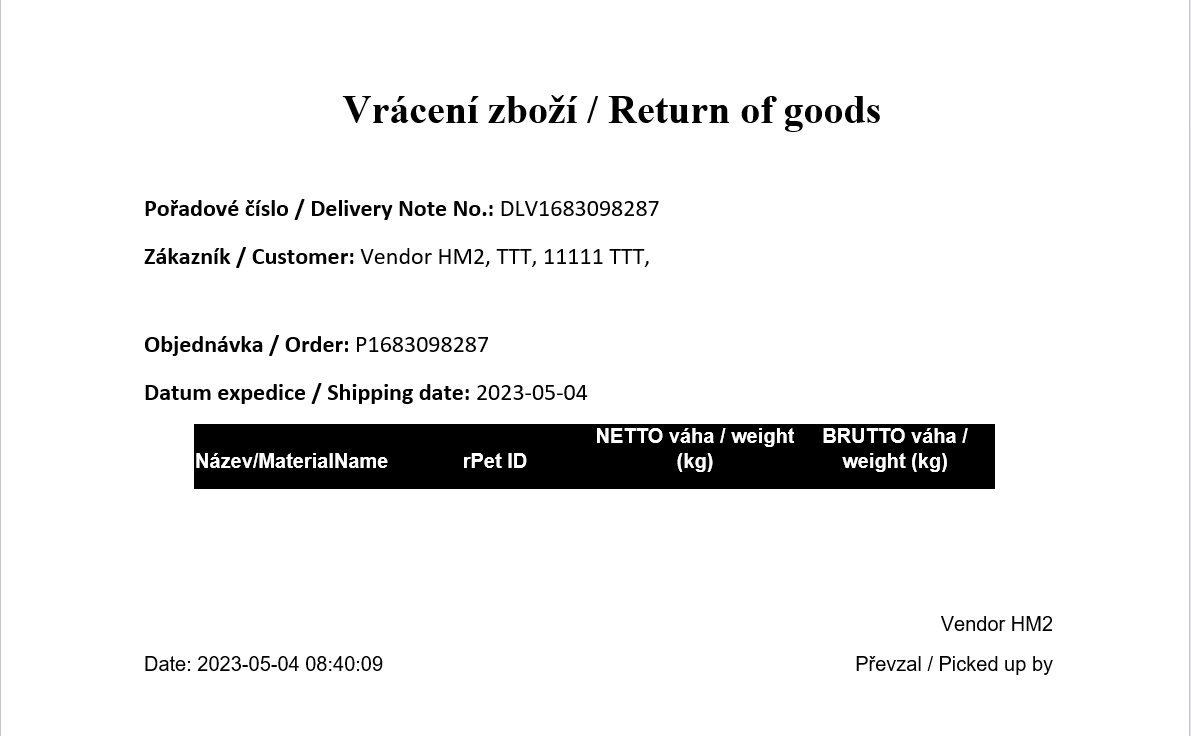 → If we press :MaterialReturn: , a document will be generated in Word that contains all the necessary information to return the material: