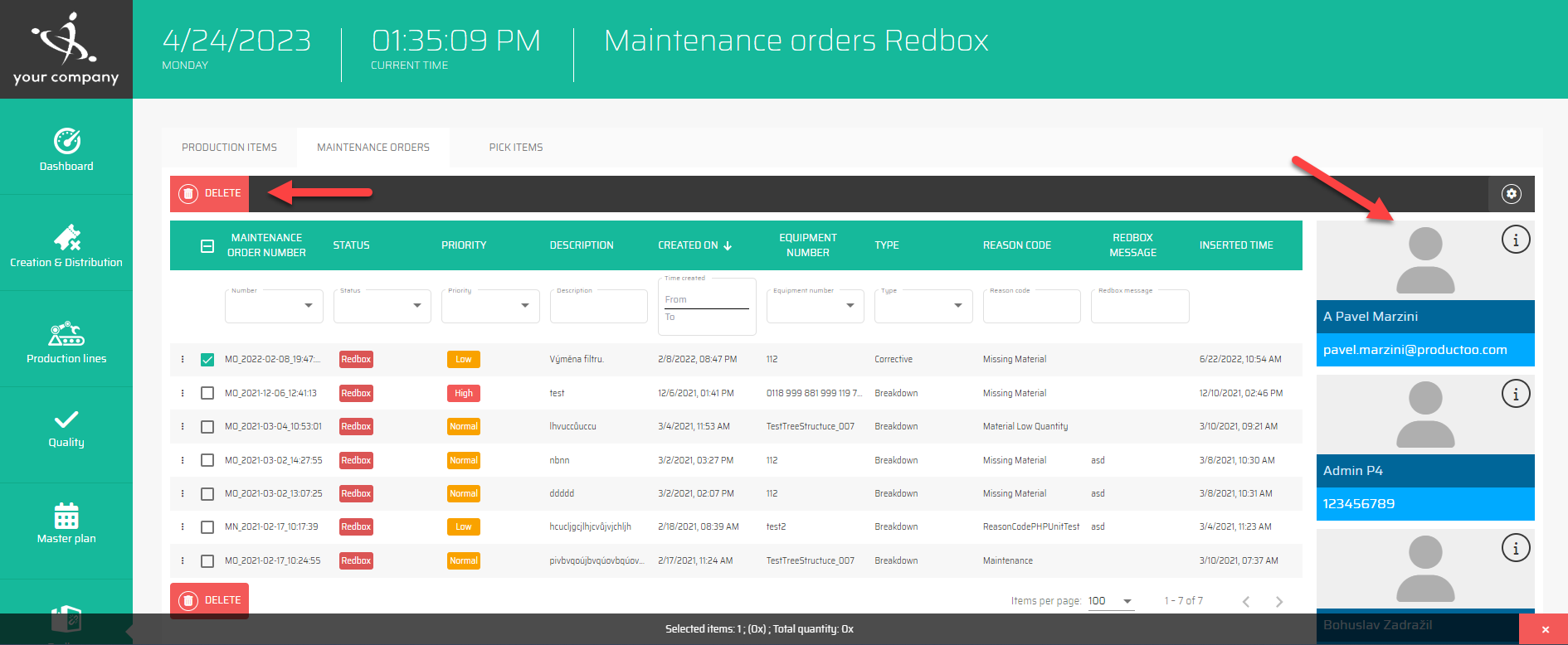 If you click on a specific item, you can either delete the item with the button :delete: or assign to a specific operator.