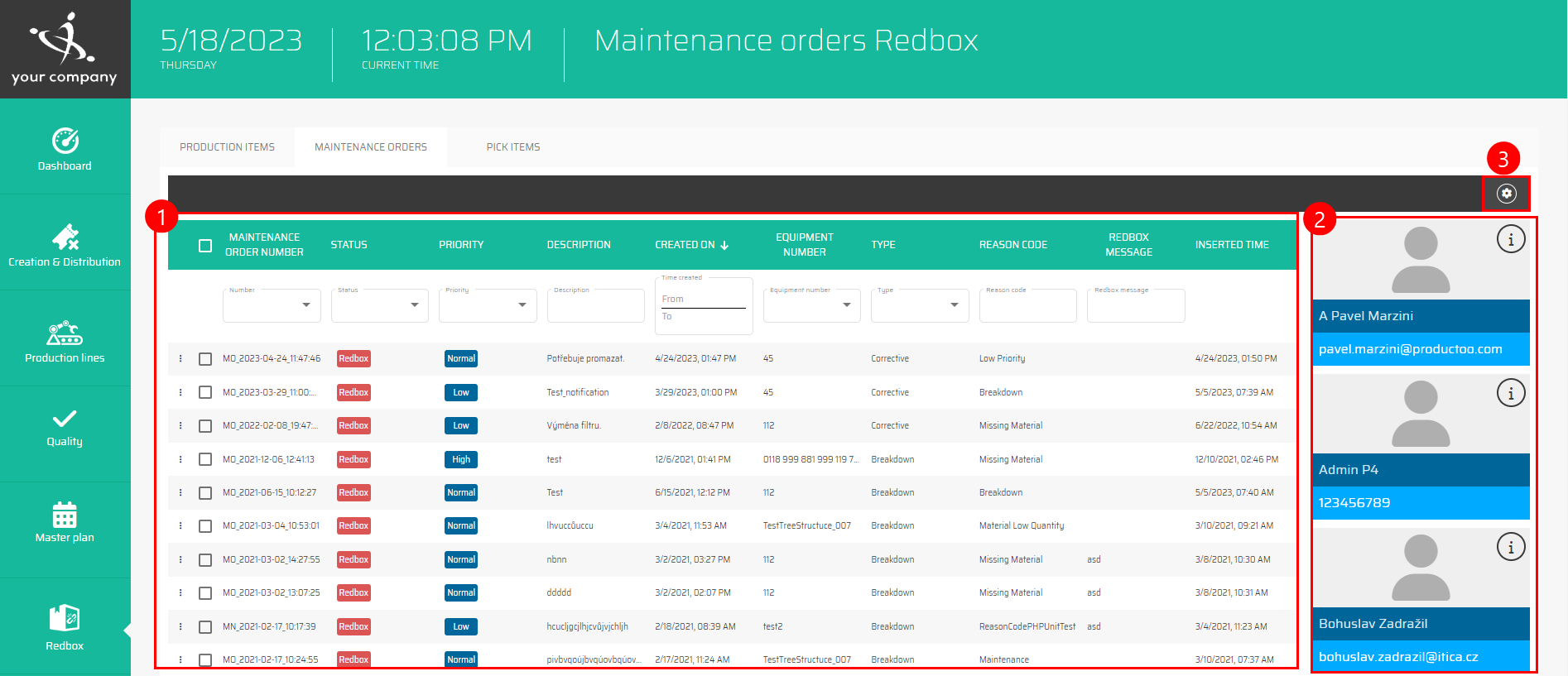 A list of all Maintenance orders in Redbox.