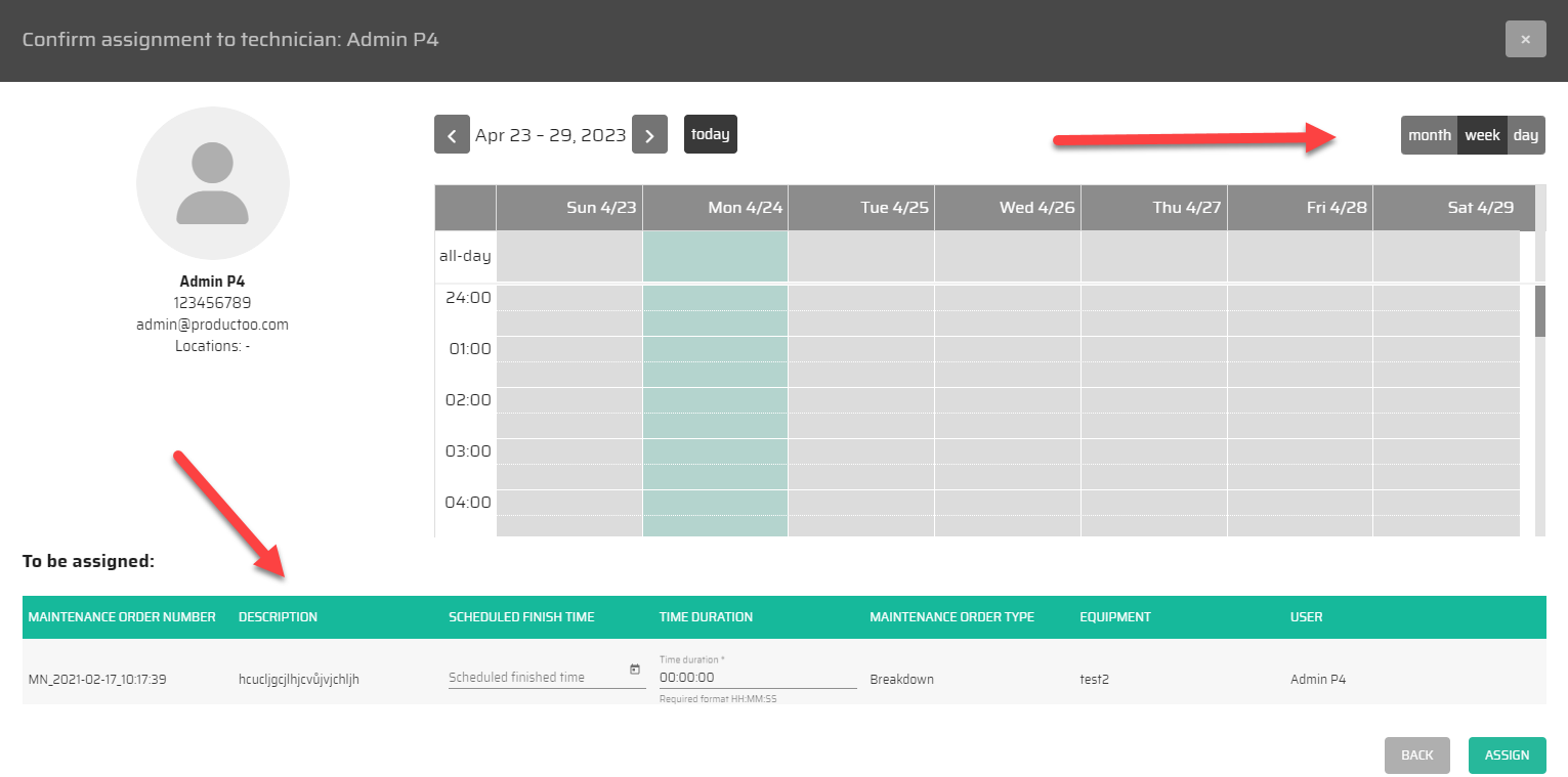 In this tab we can view the workload calendar in days, weeks and months. Also in this dialog we can see the information about items already assigned to the operator.