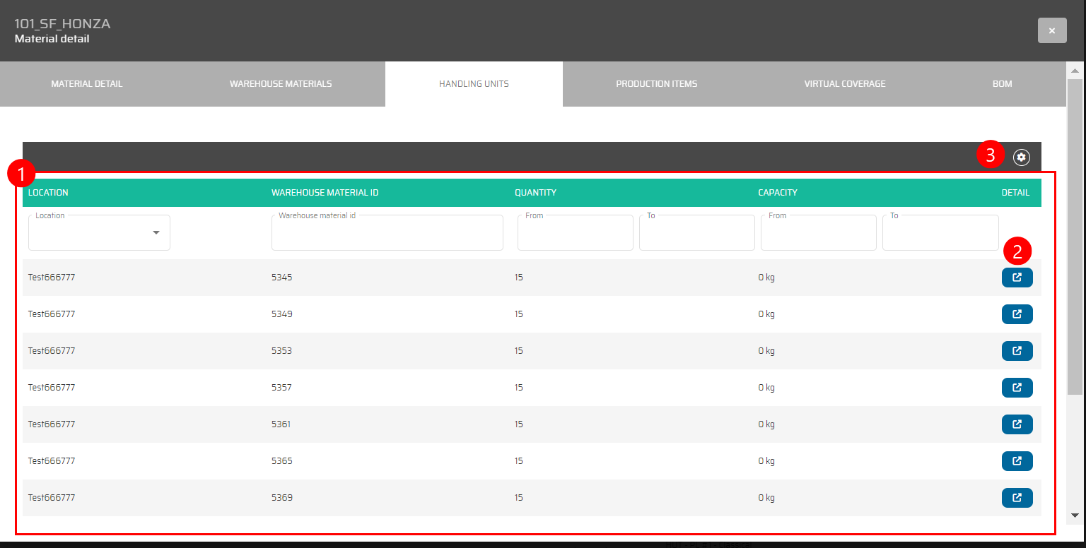 This section provides material-oriented information, mirroring the content available in the 'Warehouse Locations' tab.
