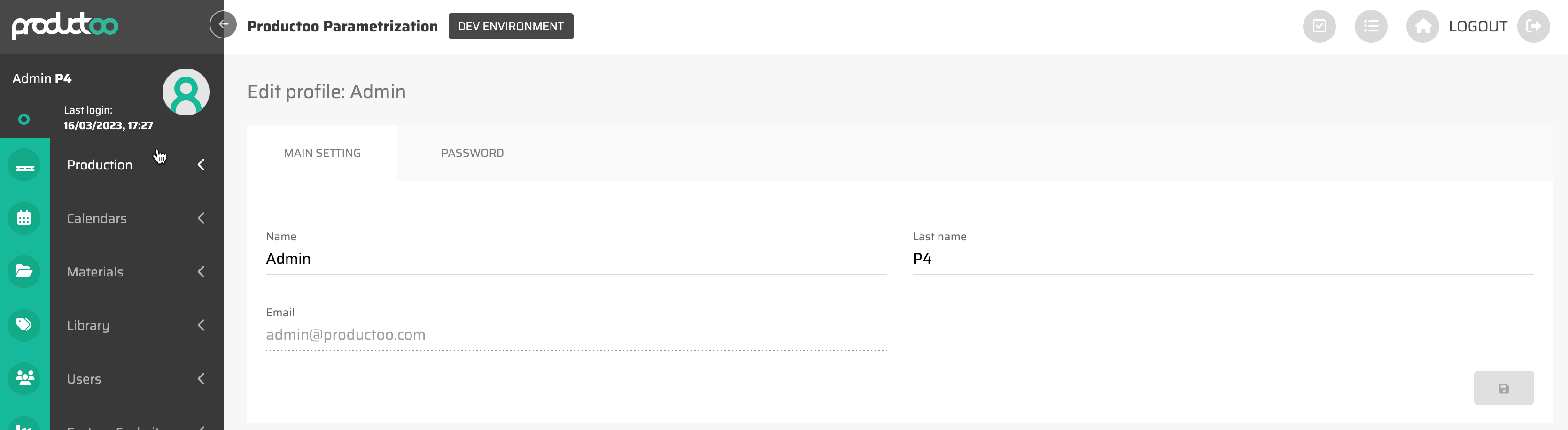 This section has two tabs in which we are able to edit our account. The tab Main setting allows us to set up our Name, Last name, and to see E-mail address. It is possible to save these settings.