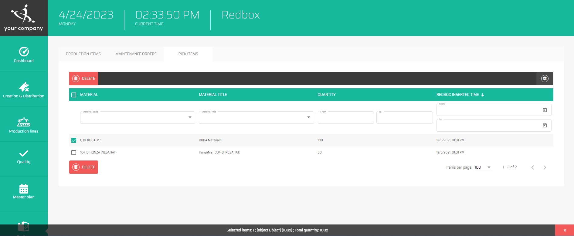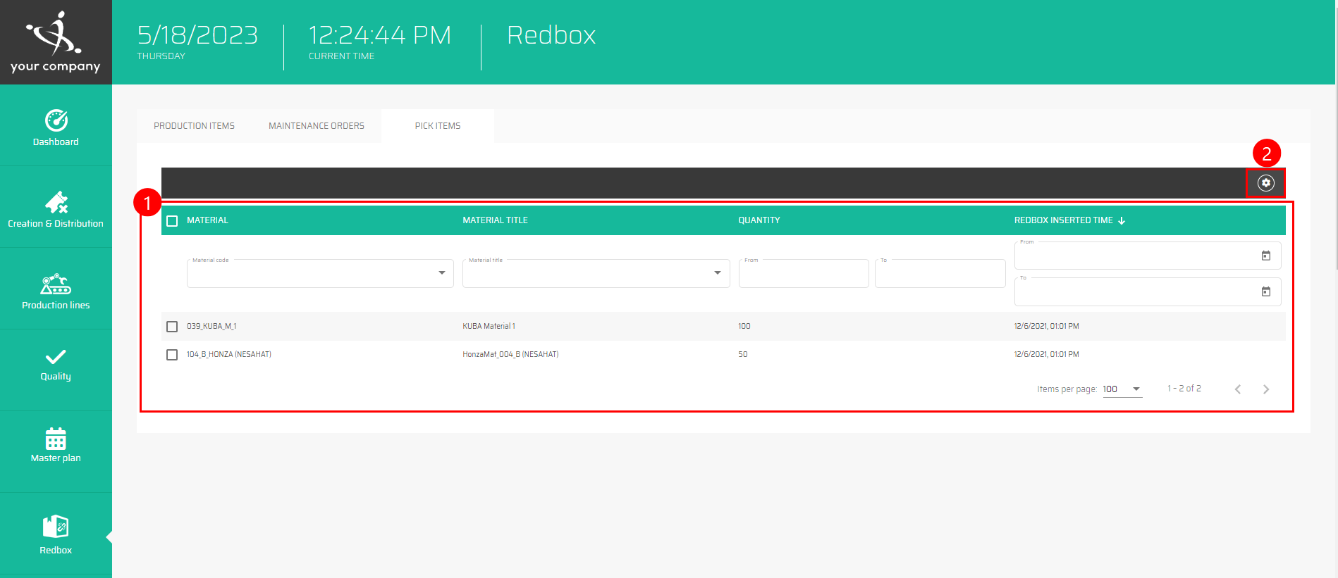 The list of all Pick items in Redbox can be filtered by all shown columns, which means by: