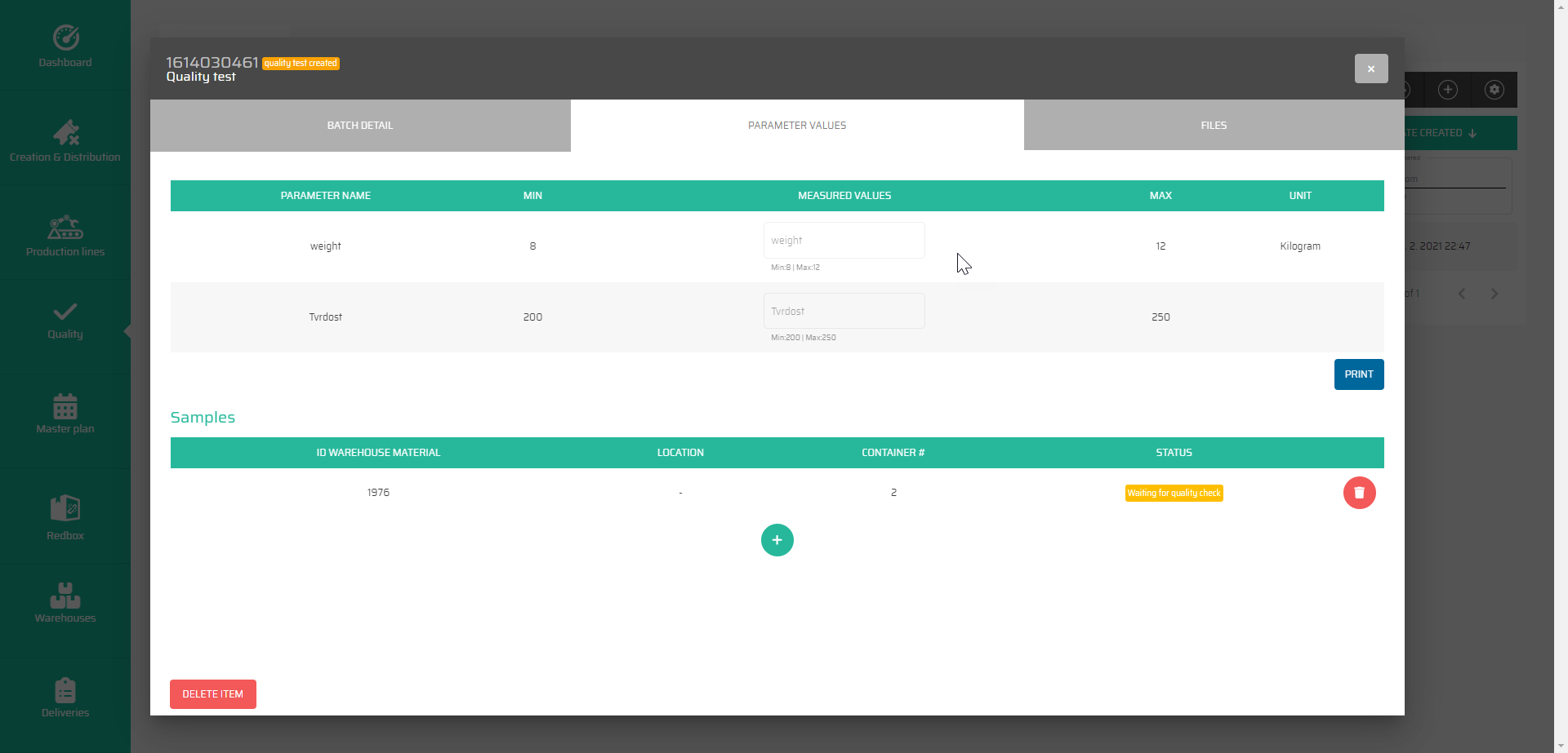 Quality test detail