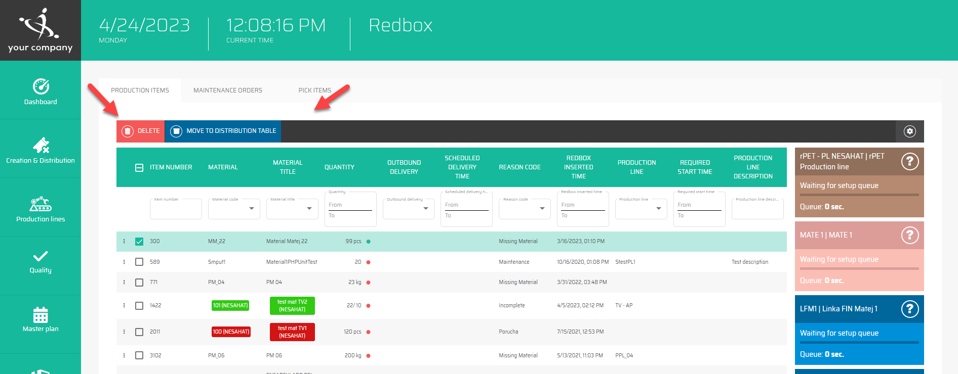 From Redbox is possible to assign Production Items to Production Lines in the same way as from Distribution Table