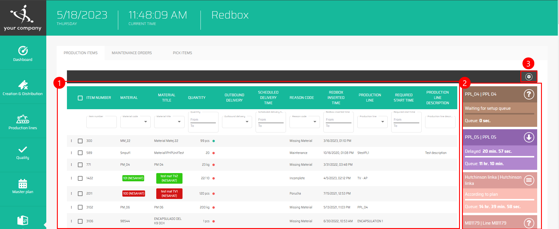 The list of all production items in Redbox can be filtered by all shown columns, which means by: