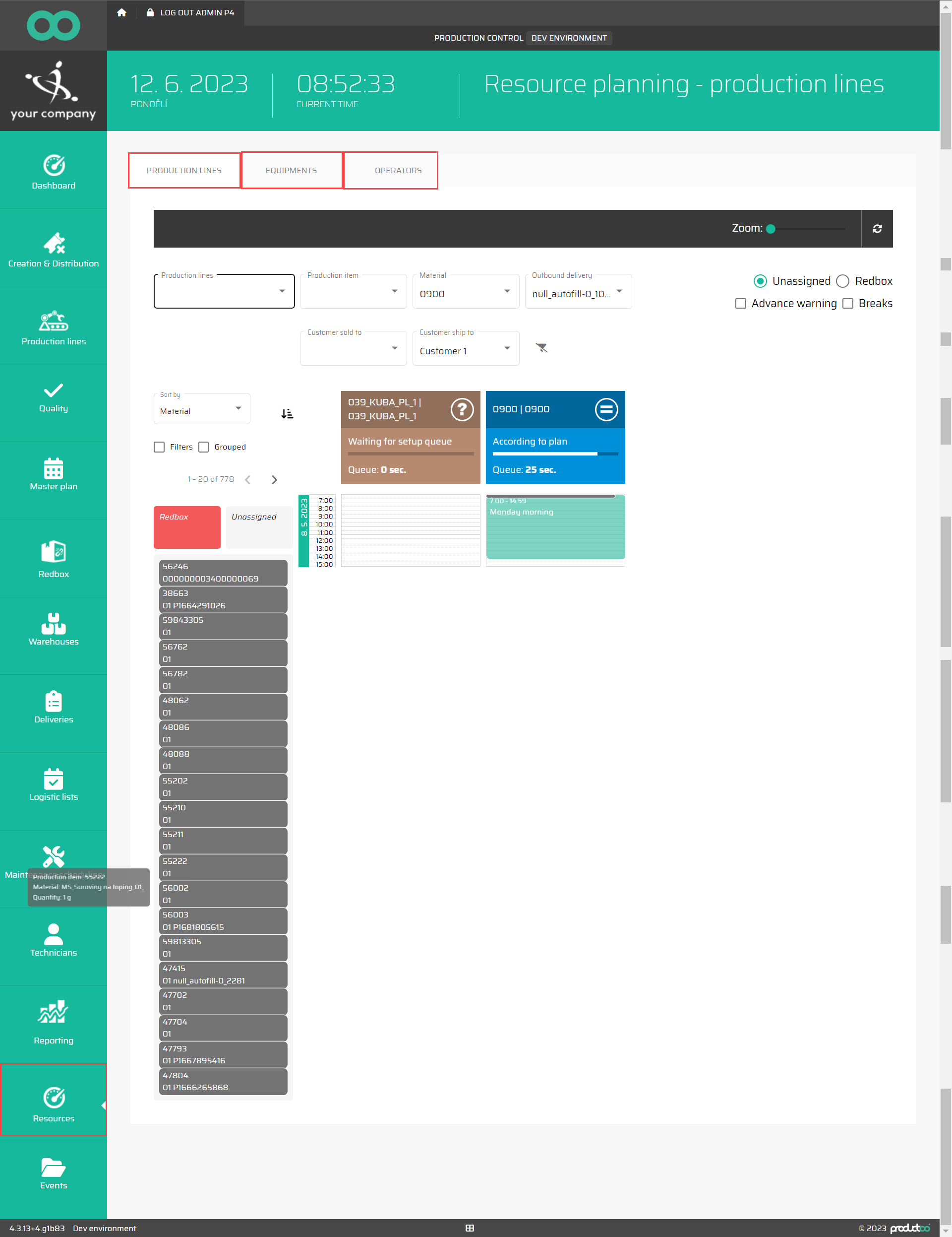 Production lines - PC -Parallel planning