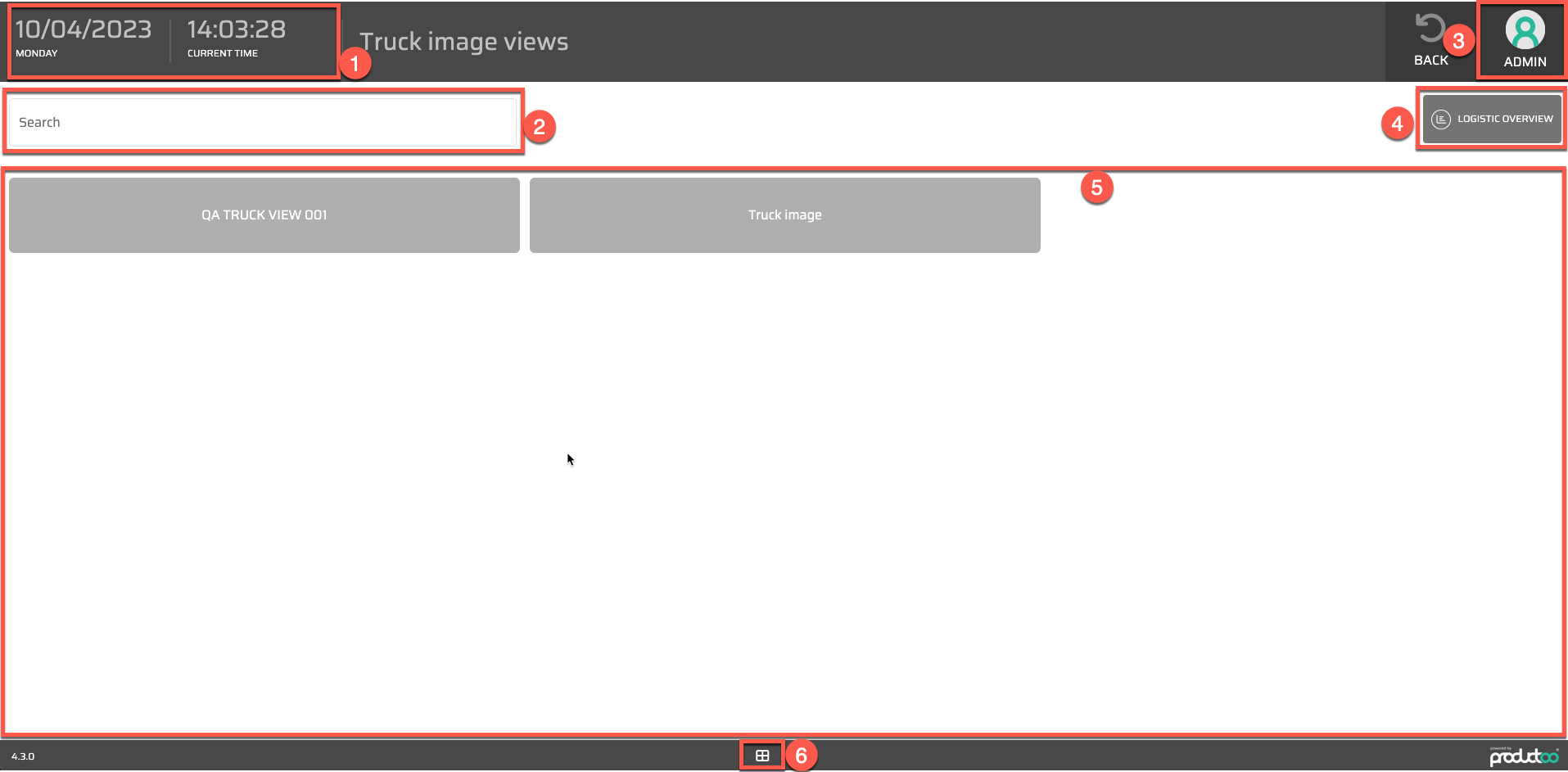 After you will perform this action, you will be redirected to the page where all Truck Image Views are. To understand this - it is possible to create multiple Truck Image Views within the Parametrization section (for example with different Truck Images) and so this page will enable you to. On this page, we are able to see: